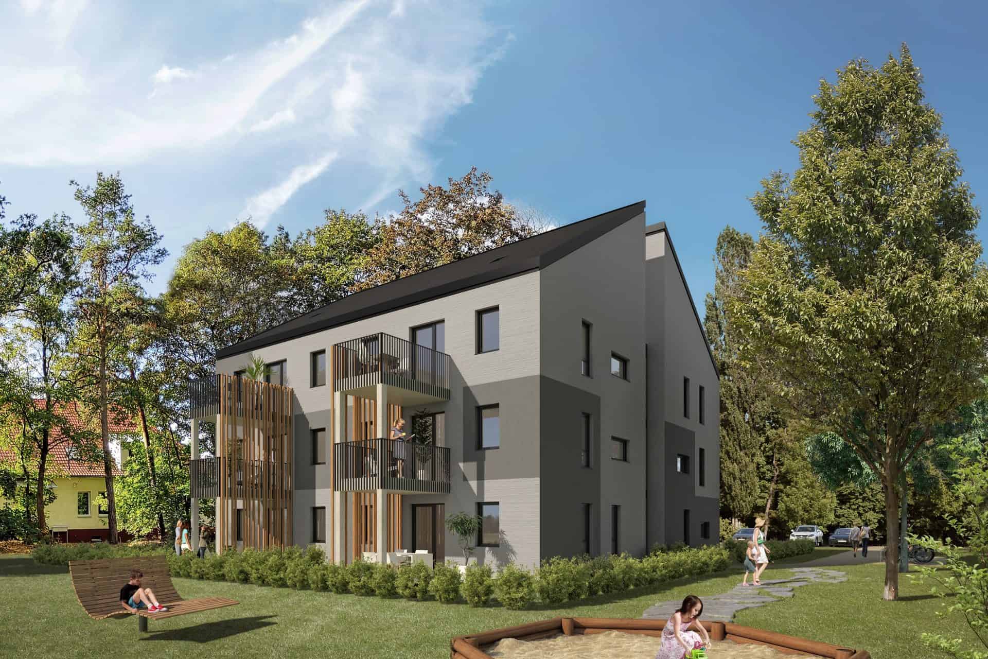 Das Haus Spitzahorn zählt zum ersten Vertriebsabschnitt des Projekts „4 Trees“ in Wustermark und umfasst 12 Anleger- und Eigentumswohnungen.