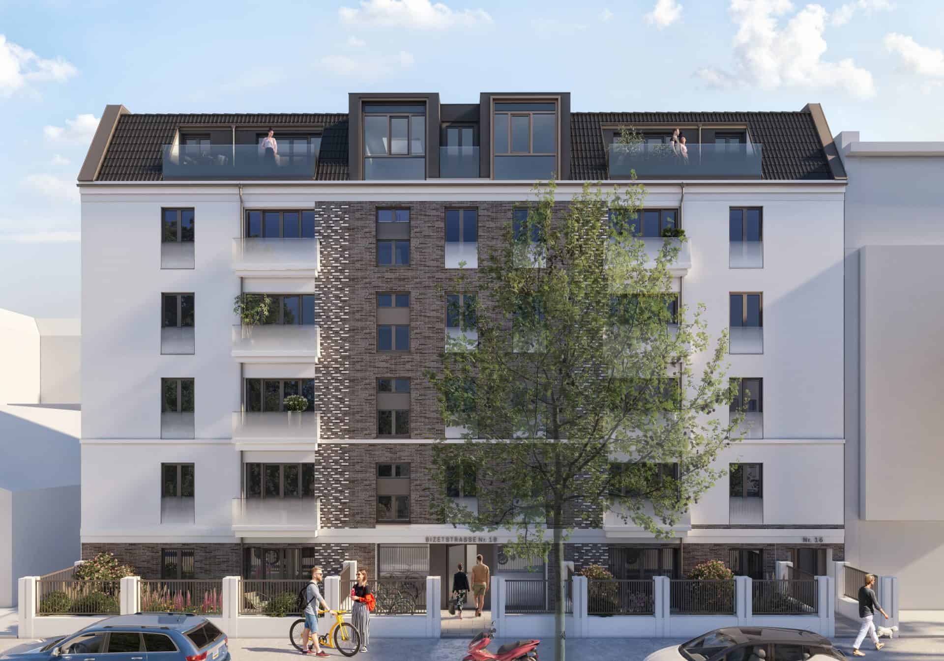 Inmitten des geschichtsträchtigen Komponistenviertels im Berliner Ortsteil Pankow-Weißensee liegt das neue Anlageprojekt „Bizet“ der C&P Immobilien AG. Insgesamt wurden hier 35 Wohneinheiten mit 71 Fahrrad-Stellplätzen errichtet. Und wie der glückliche Zufall so spielt – Verkehrsberuhigung gleich inklusive. Die Bizetstraße wird nämlich zur Gänze zur Fahrradstraße, lediglich die Anwohner haben weiterhin Zufahrt.