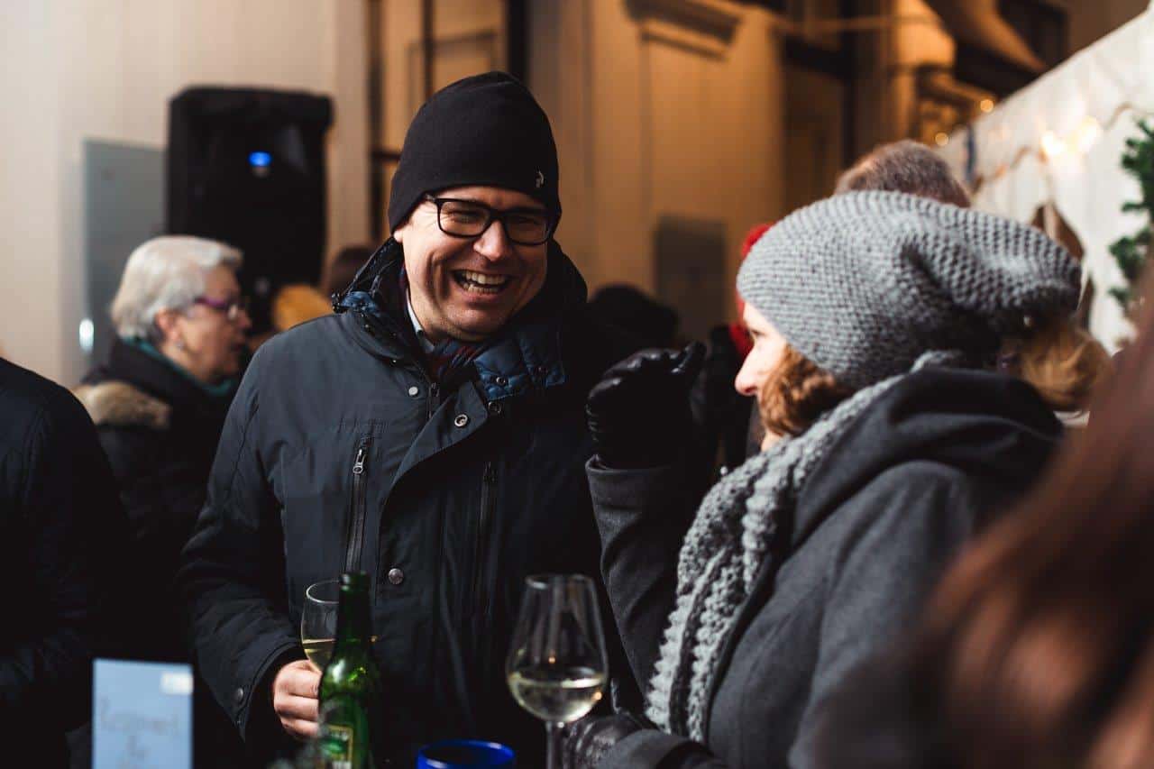 In vorweihnachtlicher Atmosphäre mit Punsch,