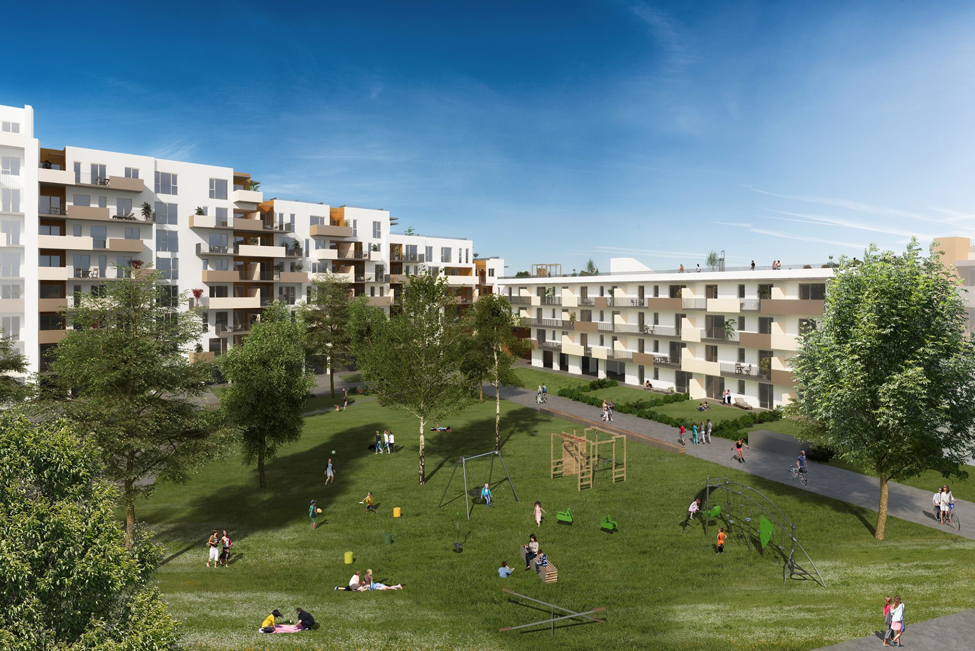 Mit dem Bauteil 4 sind nun weitere 98 Wohnungen in den Verkauf gestartet. Ab sofort können Wohnungen von 33 bis 79 m² erworben werden. Alle Wohnungen sind mit Freiflächen (Balkone, Terrassen oder Loggien) ausgestattet.