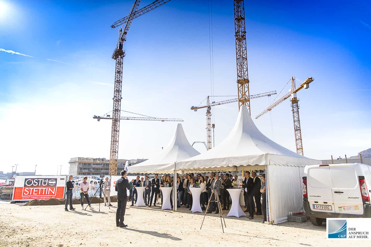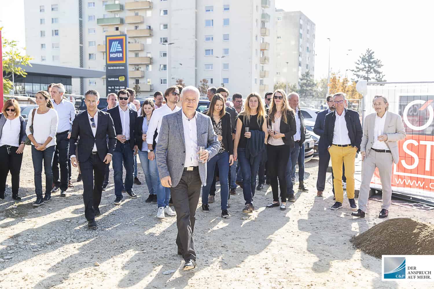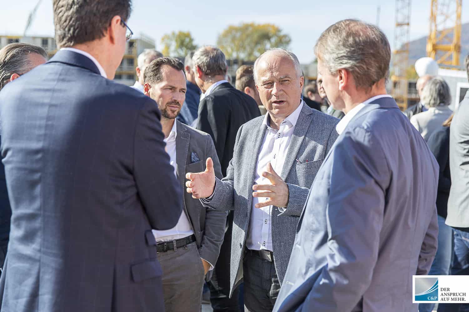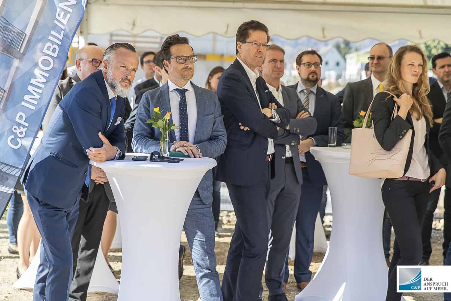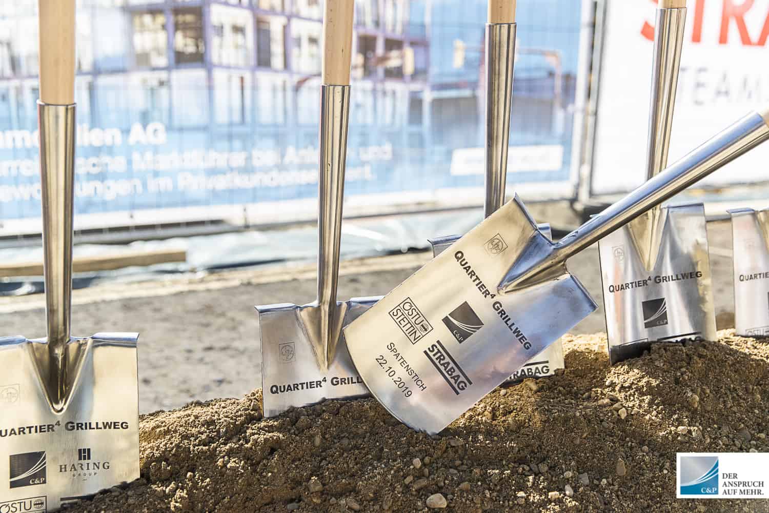 Der Leiter der Projektentwicklung Steiermark & Kärnten DI Edgar Rami, setzte gemeinsam mit Georg Puntigam, Hellfried Gugel, Hans Seitinger, Kurt Hohensinner sowie Ronald Mandl die Spaten für rund 700 Anleger-, Eigentums- und Mietwohnungen.
