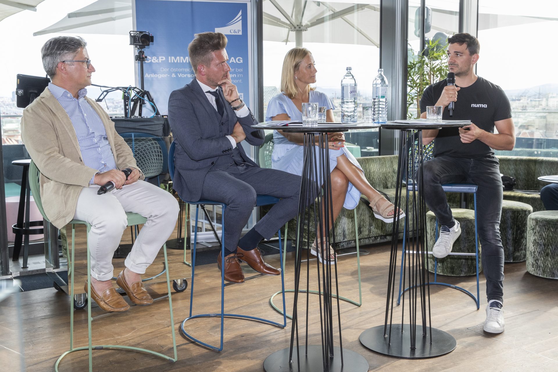 C&P CEO und Vorstandsvorsitzender Ing. Markus Ritter, Michaela Kirchgasser und Gerhard Maringer, Co-Founder und CTO der numa Group, tauschten sich im Podiumsgespräch über das innovative Projekt aus. Auch C&P Wien Geschäftsführer DI Cyrus Asreahan stellte sich im Anschluss den Fragen der Gäste. Der Austausch ermöglichte interessante Einblicke, was Wohnen heute leisten muss und was morgen relevant sein wird.
